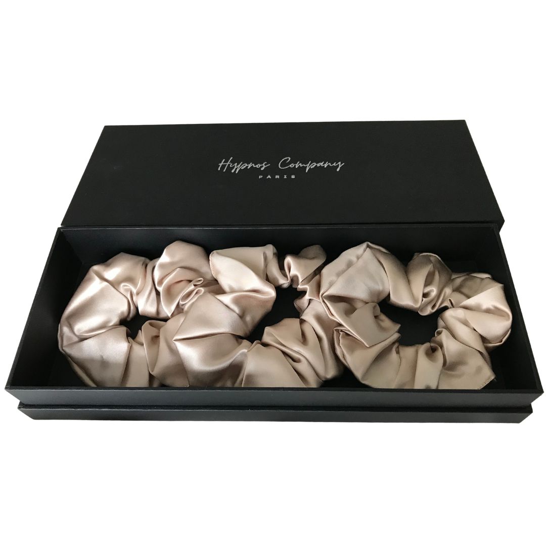 Nos chouchous en soie ajouteront une touche d’élégance à votre coiffure tout en protégeant vos cheveux.